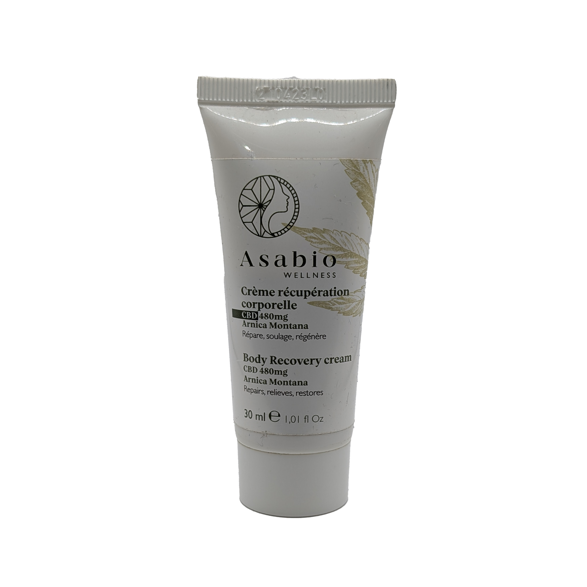 Crème Récupération Corporelle Asabio : soulage, hydrate et régénère les muscles fatigués avec 480 mg de CBD et des extraits naturels.
